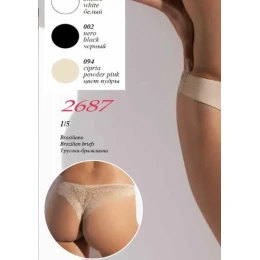 Dámské kalhotky brazilkového střihu 2687 ze série Allure od značky SieLei. Brazilky jsou kombinované s hladkou elastickou látkou a pružnou krajkou. Krajka je aplikována na zadním dílu. Zadní část je prostřižena, aby dokonale "sedla" na zadeček. Okraje nohaviček jsou volné a nezařezávájí se. V pase je jemná úzká gumička a do vnitřního dílu je zapracován bavlněný klínek pro pohodlné nošení.