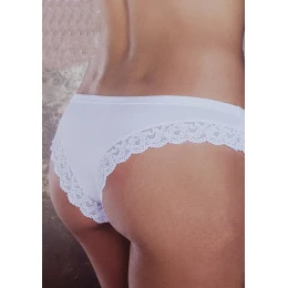 Dámské kalhotky brazilkového střihu značky Cotonella. Kalhotky jsou kombinací hladké látky a květinové krajky po obvodu nohaviček. V horním obvodu je vsazena aplikace s logem Cotonella. Do vnitřního dílu je zapracován bavlněný klínek z BIO bavlny pro komfortní nošení.