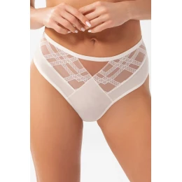 Dámske brazílske nohavičky. Odhaľujúce a zvýrazňujúce zadok. Vyrobené z elastického tylu v dvoch farbách a elastickej čipky. Zadná časť s čipkovým lemom. Bavlnený rozkrok