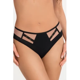 Čiastočne odhaľujúce a zvýrazňujúce zadoček. Vyrobené z mikrovlákna s prvkami elastického a stabilného tylu. Švy pokryté matnými páskami. Ozdobné pruhy z elastickej pásky na prednej strane. Zadná časť zakončená skladaným plochým mikrovláknom. Bavlnený rozkrok.