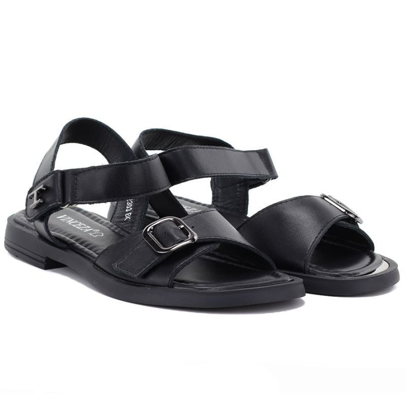 Pridanie recenzie k Dámské černé kožené sandály Vinceza 26-62303