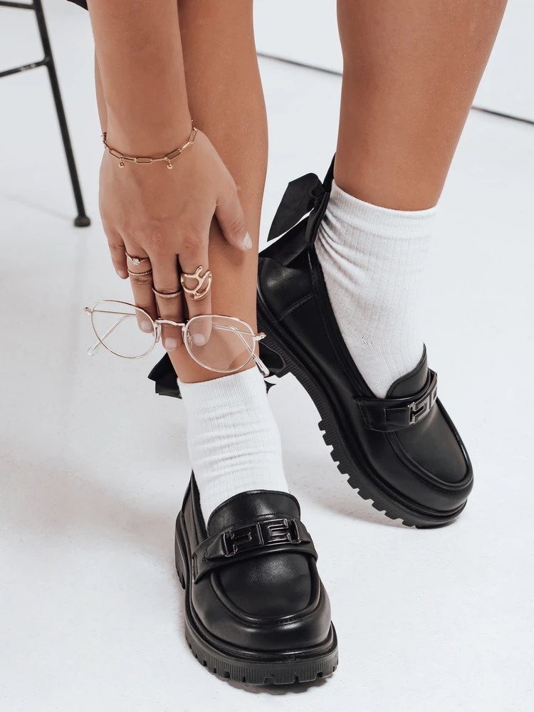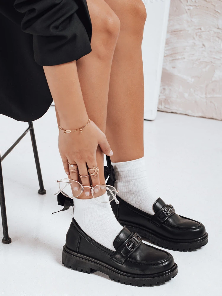 Tieto dámske mokasíny z ekokože sú kombináciou klasiky a pohodlia v modernom vydaní. Model s ozdobnou prackou v zlatej farbe podčiarkuje eleganciu a masívna 3 cm vysoká platforma zaisťuje stabilitu a pohodlie pri chôdzi. Ide o univerzálnu obuv, ktorá sa hodí na ležérne aj elegantnejšie štýly.