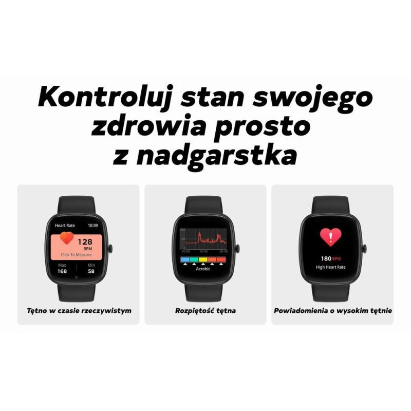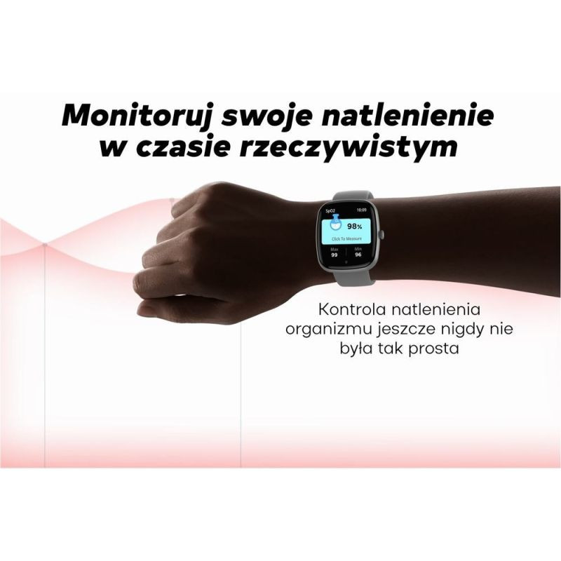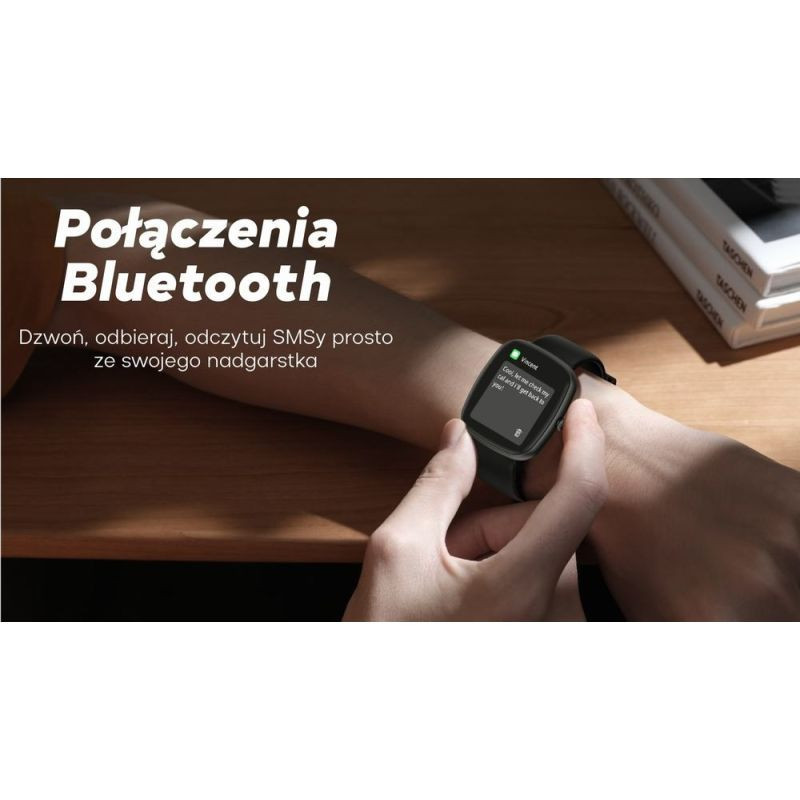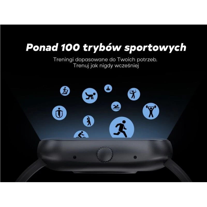 Wyświetlacz TFT 1,83” (240×284 px) prezentuje się perfekcyjnie – wyraźny, dotykowy, responsywny. Do tego personalizacja tarczy, animowane grafiki i menu w języku polskim – wszystko, by dopasować zegarek do stylizacji, nastroju i okazji.
