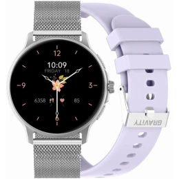 Dámske inteligentné hodinky GRAVITY GT12-6 Purple Silicone Strap + Silver Bracelet