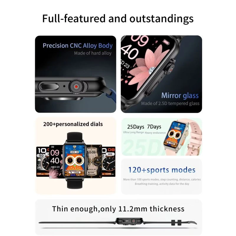 Ten smartwatch to coś więcej niż stylowy dodatek – to Twoje osobiste centrum dowodzenia w rytmie intensywnego dnia. Smukła, lekka koperta o wymiarach 44 × 35 mm i grubości zaledwie 11,2 mm subtelnie podkreśla nadgarstek, a wymienny pasek (18 mm) pozwala dopasować go do każdej stylizacji. Kobiecy design, nowoczesna technologia – dokładnie tak, jak lubisz.Wyświetlacz TFT IPS 1.57” z dotykową obsługą i wysoką rozdzielczością zapewnia idealną czytelność. W menu masz do wyboru 2 motywy, a tarcz aż 12 – plus dodatkowe do pobrania lub stworzenia własnej. Dopasuj ekran do swojego nastroju – codziennie na nowo.
