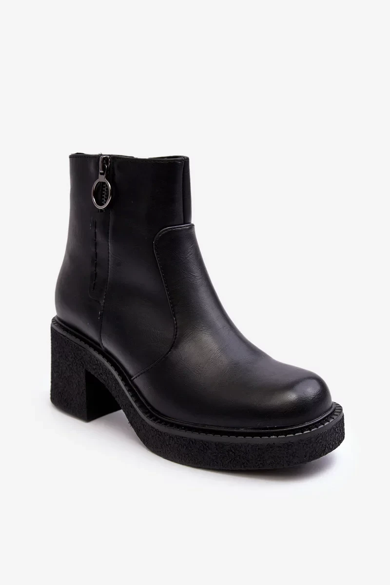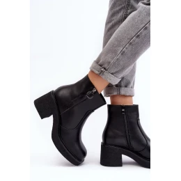 Dámske členkové topánky na pevnom podpätku a platforme. Vyrobené z ekokože. Zapínanie na zips na boku. Vnútri je zateplená kožušinou príjemnou na dotyk. Zaoblené prsty. Zvršok je zdobený prešívaním a dodatočným krátkym zipsom. Päta je vystužená. Pri výbere veľkosti sa riaďte tabuľkou veľkostí