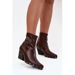 Dámské boty z eko kůže na sloupku hnědé model 21709985 - Boto