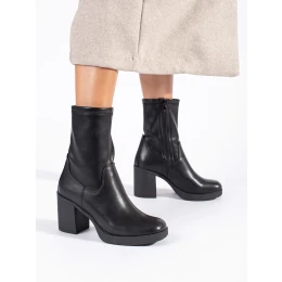 Dámske dizajnové čierne členkové topánky so širokým podpätkom