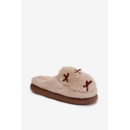 Dámske domáce papuče s kožušinou a mašľami - béžové Saviera