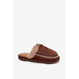 Dámske domáce papuče s kožušinou a výšivkou - hnedé Perivelle