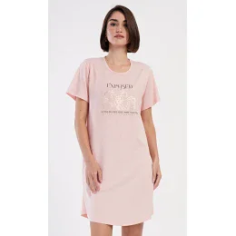 Dámske bavlnené šaty Michaela s krátkym rukávom. Tieto domáce jednofarebné šaty s okrúhlym výstrihom a vreckami zdobí obrázok zlatého kvetu a nápis "Exposed" na hrudi. Použitý bavlnený materiál je príjemný a pružný na dotyk. Šaty sú pohodlné, vhodné na spanie aj na každodenné nosenie.