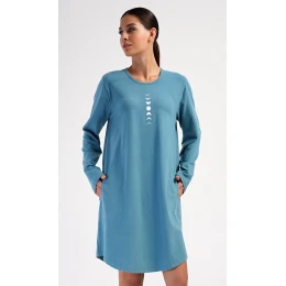 Dámske domáce šaty Elisabeth s dlhými rukávmi. Jednofarebné domáce šaty s dĺžkou po kolená, okrúhlym výstrihom a vreckami zdobí biela potlač mesačnej fázy. Bavlnený materiál s elastanom je mäkký a príjemný na dotyk.