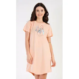 Dámske bavlnené domáce šaty s krátkym rukávom Garden. Tieto šaty s okrúhlym výstrihom zdobí kvetinová potlač a jemný nápis. Na bokoch majú všité vrecká zdobené lemovaním. Použitý bavlnený materiál je príjemný a pružný na dotyk. Šaty sú vhodné na spanie aj na každodenné nosenie.