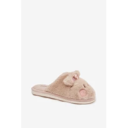 Dámske domáce papuče s ušami a mašľou Corayne - béžové