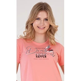 Dámské bavlněné domácí šaty s krátkým rukávem Lucie. Pohodlné jednobarevné domácí šaty s kulatým výstřihem jsou ozdobeny pestrým potiskem. Šaty mají praktické kapsy. Použitý bavlněný materiál je příjemný a poddajný na dotek. Domácí šaty jsou vhodné na spaní i na denní nošení.