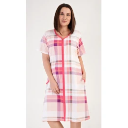 Dámské bavlněné domácí šaty s tříčtvrtečním rukávem Puntík. Noční košile má zapínání na zip a je ozdobená potiskem puntíčků. Na předním díle je našitá jedna kapsa ozdobená lemovkou. Bavlněný materiál je poddajný a jemný na dotek. Noční košile je vhodná i na denní nošení.