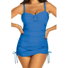 Dámske dvojdielne plavky Bayamon 15 8050BM 30 SELF - modrá farba - typ tankiny - vyrobené z kvalitného mikrovlákna - vystužené košíčky bez kostice - zdobenie medzi košíčkami - odnímateľné a nastaviteľné ramienka - nariasené boky so šnúrkami - nohavičky so širokými bokmi - rýchloschnúci materiál, odolný voči chlóru a slnku