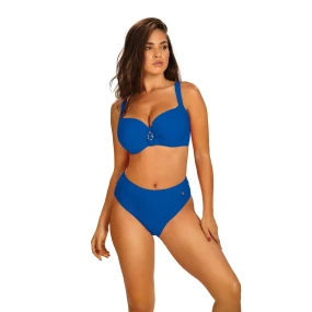 Dámské dvoudílné plavky Bayamon6 995BM6 13 SELF - světle modrá barva - z hladkého mikrovlákna - vyztužené košíčky - mezi košíčky ozdoba - s kosticemi - nastavitelná a neodepínatelná ramínka - klasické kalhotky - vyšší pas