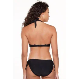 Dámské dvoudílné plavky 7214 black LingaDore - černá barva - košíčky zdobené řasením - mezi košíčky spona - zavazování za krkem nebo na zádech - kalhotky nižšího střihu - zavazování na bocích