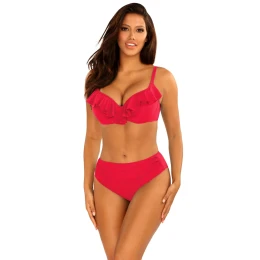 Dámske dvojdielne plavky Canoy 10 940A1 red SELF - červená farba - vyrobené z príjemného, elastického a rýchloschnúceho materiálu - tepelne tvarované - košíčky s kosticami - vrchný diel zdobený riasením - nastaviteľné ramienka - zapínanie na chrbte - klasický strih plaviek - rýchloschnúci materiál, odolný voči chlóru a slnku