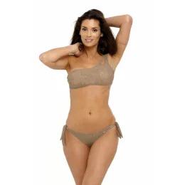 Niečo rozhodne iné, originálne a nápadité, takže ponuka je zameraná na ženy, ktoré sa chcú zviditeľniť v dave a staviť na netradičné riešenie, odlišné od všetkých ostatných. Ak sa teda vydáme týmto smerom, s radosťou vám ponúkame krásne plavky Sabrina M - 524, ktoré za svoju originalitu vďačia látke imitujúcej semiš aj strihu. Nohavičky sú zaviazané na bokoch, podprsenka na jednom ramene a vďaka tejto asymetrii získava na účinnosti. Tieto plavky odporúčame v každom prípade, pretože potešia každú ženu.