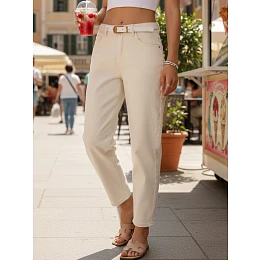 Dámske džínsové nohavice mom fit s opaskom ecru FashionStreet UY2985