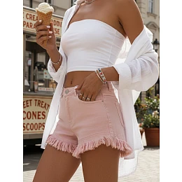 Dámske džínsové šortky s strapcami ružové FashionStreet SY0501