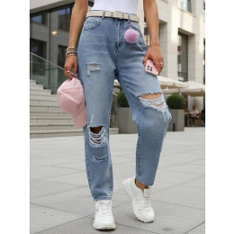 Dámske džínsy balónového strihu s odretou modrou FashionStreet UY2984