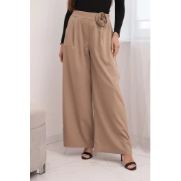 Dámské elegantní kalhoty s širokou nohavicí a ozdobným květem fango