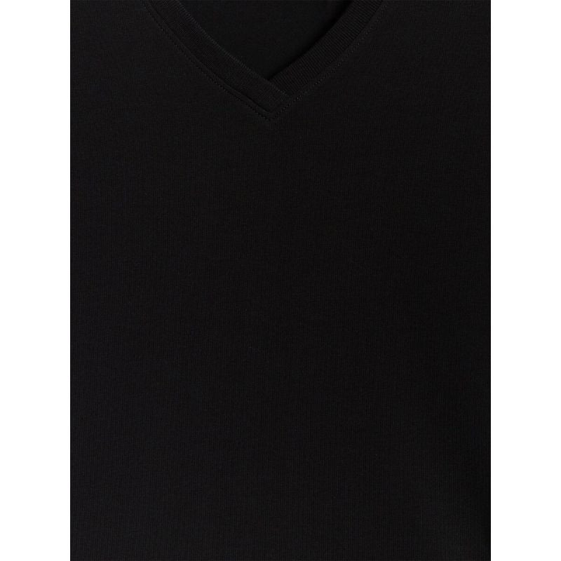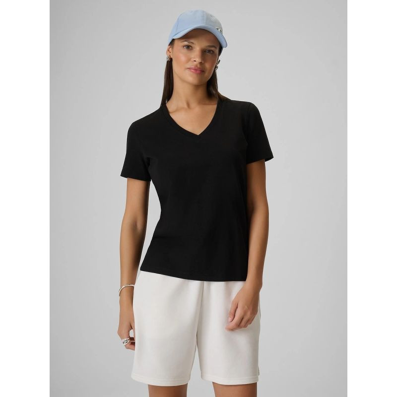 Toto univerzálne tričko bez vreciek, zakončené výstrihom do V, ktorý dodáva ľahkosť a nadčasovosť, je ideálne na každodenné nosenie - v práci, doma aj na cestách.