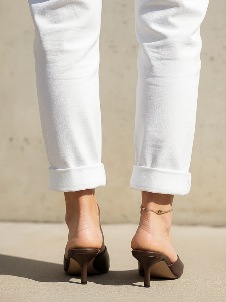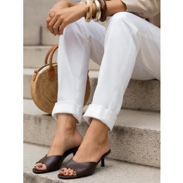 Klapki na obcasie uzupełniają letnie i przejściowe stylizacje, oferując połączenie lekkości oraz stabilnego podparcia. Otwarty przód nadaje całości swobodny charakter i sprzyja komfortowi w cieplejsze dni. Smukły obcas delikatnie unosi sylwetkę, zachowując wygodę podczas chodzenia. Model sprawdza się zarówno w codziennych zestawach, jak i w bardziej eleganckich stylizacjach.