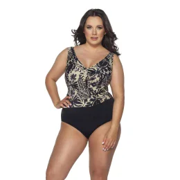 Dámske jednodielne plavky 51 AVA - elastický materiál z farebného mikrovlákna - vzorovaný vrchný diel - jednofarebný zadný diel - bez kostice - široké ramienka - opticky zoštíhľujú Zloženie materiálu: 80 % polyamid + 20 % elastan