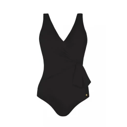 Dámske jednodielne plavky Thailand3 1069F23 19 SELF - čierne - vystužené košíčky poskytujú pohodlie a oporu - tvarujúce volániky opticky zoštíhľujú postavu - odolné voči chlóru a UV žiareniu - rýchloschnúci materiál