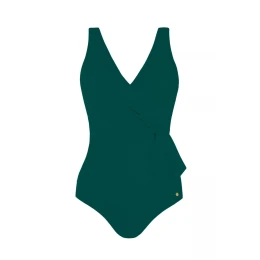 Dámske jednodielne plavky Thailand3 1069F23 7 SELF - zelená farba - vystužené košíčky poskytujú pohodlie a oporu - tvarujúce volániky opticky zoštíhľujú postavu - odolné voči chlóru a UV žiareniu - rýchloschnúci materiál
