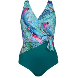 Dámske jednodielne plavky 1069F23 48 Thailand 3 SELF - zelená farba - exotický vzor - vystužené košíčky - zaväzovanie na chrbte