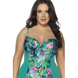 Dámské jednodílné plavky 52 Paradise AVA - zelená barva - pestrobarevný potisk - vyztužené košíčky - s kosticemi - nastavitelná ramínka - zapínání v zadní části