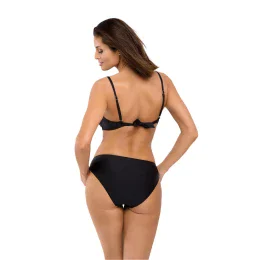 Hladké, jednodílné dámské plavky - monokiny bez ozdob, které však perfektně napodobuje nejnovější trendy, aktuálně kubánský plážový styl. Vrchní část plavek skrývá vyztužené košíčky s kosticemi, které jsou vyztuženy speciální pěnou se zabudovanou vycpávkou push-up. Díky vycpávkám mohou být ňadra přizvednuta více nahoru a do středu dekoltu, zároveň vypadají opticky větší. Smyslný volán dekolt zvýrazní. Ramínka mají možnost celkového odepnutí. Obvod se zavazuje na zádech. Na bocích jsou atraktivní výstřihy. Spodní díl je komfortní, na bříšku vyniká pruh látky maskující drobné nedostatky v jeho oblasti. Kalhotky zakryjí celý zadeček a elegantně se mu přizpůsobí. Italská vysoce kvalitní látka Carvico Tesutti.