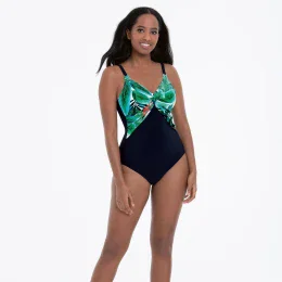Dámske jednodielne plavky M3 7239 826 čierne so zeleným vzorom - Anita