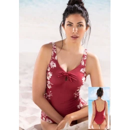 Dámske jednodielne plavky talianskej značky Siélei. Plavky majú všitú podprsenku, ktorá má vystužené košíčky. Pod košíčkami je vystužený pás, ktorý dobre drží prsia. Plavky majú dĺžkovo nastaviteľné ramienka. Plavky sú celé podšité rýchloschnúcou látkou. Plavky sú v peknej bordovej farbe a na bokoch sú svetlé kvety, ktoré vytvárajú zaujímavý kontrast k plavkám.