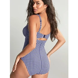 Drátěné balkonové plavkyVestavěná přední ramínka pro pohodlné nošení na ramenouZajišťují pohodlné a podpůrné nošení až do velikosti košíčku K (US O)Vyrobeno z luxusní strukturované ginghamové tkaniny v námořnické a bílé barvě