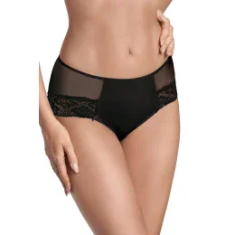 Klasické vysoké nohavičky 029 Ewana - čierna farba - klasický strih - sú na bokoch plnšie - sú vyrobené z hladkého mikrovlákna, jemné tylovej sieťoviny az efektné čipky s kvetinovým motívom