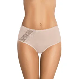 Dámske nohavičky 068 beige Gabidar - béžová farba - klasický strih, ľahko zvýšený pás - na bokoch majú detail z jemného tylu a výšivky v rovnakej farbe - elegantný dizajn