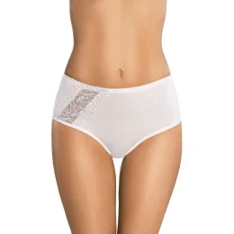 Dámske nohavičky 068 white Gabidar - biela farba - nohavičky majú klasický strih a ľahko zvýšený pás - na boku majú detail z jemného tylu zdobený čipkou v rovnakej farbe - jednoduchý dizajn