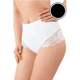 Dámske nohavičky 099 Ewana - čierna farba - z jemného mikrovlákna - čipka s kvetinovým motívom - vysoký a plnší strih