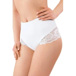 Dámske nohavičky 099 Ewana - biela farba - z jemného mikrovlákna - čipka s kvetinovým motívom - vysoký a plnší strihMateriálové zloženie: 85% polyamid + 15% elastan