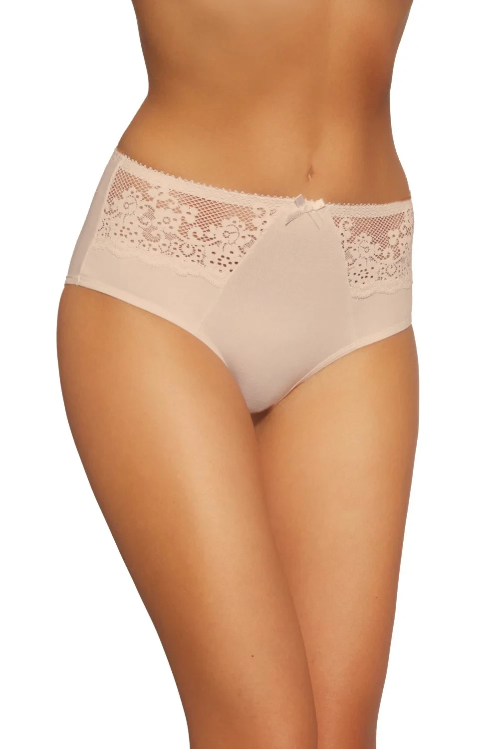 Dámske nohavičky 136 white Gabidar - béžová farba - nohavičky majú klasický strih a zvýšený pás - predná strana je zdobená jemnou kvetovanou čipkou - romantický dizajn - na hornom leme roztomilá mašličkaMateriálové zloženie: 95% bavlna + 5% elastan