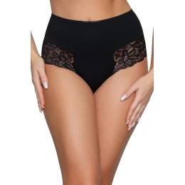 Dámske nohavičky 187 black BABELL - čierna farba - z vysoko akostnej bavlny - vyšší pás - boky plné - zadná časť hladká - zdobené azúrovou čipkou na prednej časti