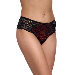 Dámske nohavičky 202 black/red GABIDAR - čierne - vyrobené z kvalitnej bavlny - klasický strih - zdobené čipkou s kvetinovým motívom - predná časť pošitá červenou látkou - saténová mašľa v páse