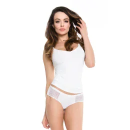 Okouzlující bílé bikiny s krásnou průhlednou krajkou na bocích. Návrh z bezproblémové neviditelné linky, od společnosti Julimex. Měkká, pružná tkanina. Složení: 89 % polyamid, 10 % elastan, 1 % bavlna.