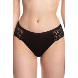Ve přední části kalhotek je hladké mikrovlákno střižené laserem. Boky a zadní díl modelu jsou ušité z ažurové krajky. V pase modelu je pohodlná plochá guma.
